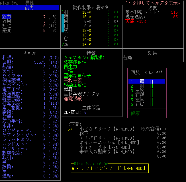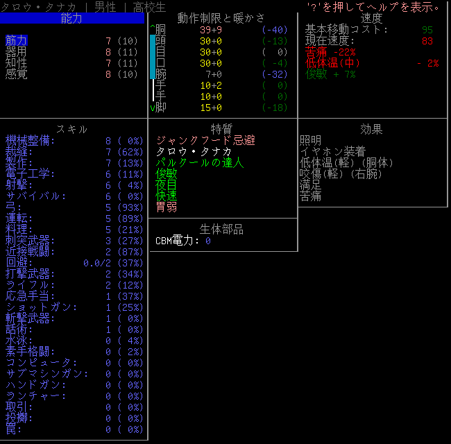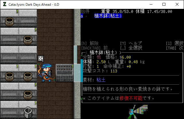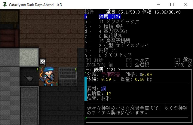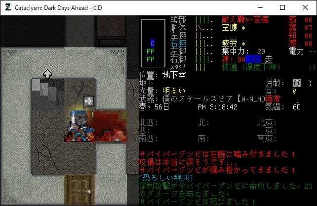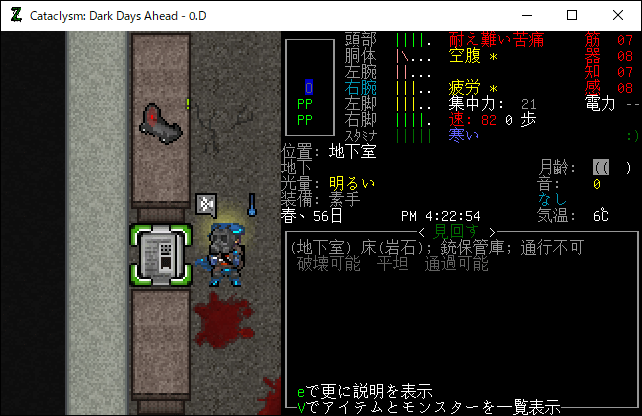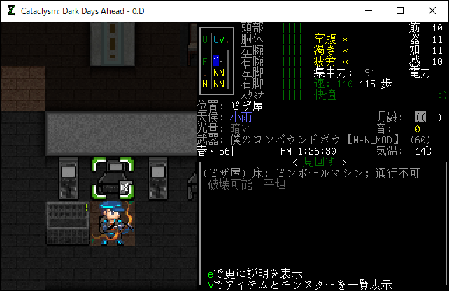 この投稿は「Cataclysm Dark Days Ahead」のプレイ日記です。毎日更新をします。目次はこちら。
