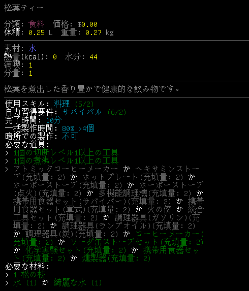 今日はゾンビの大群をぶっ○しまくります。朝食は栄養のある献立にしましょう。松の枝から作れる『松葉ティー』はどうだろうか。説明文に健康的な飲み物だと書かれていますね。