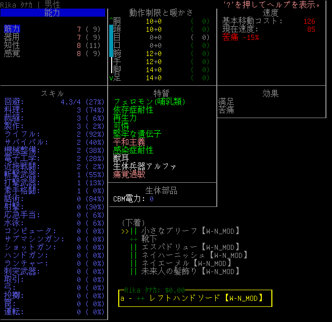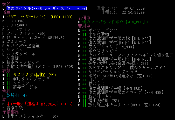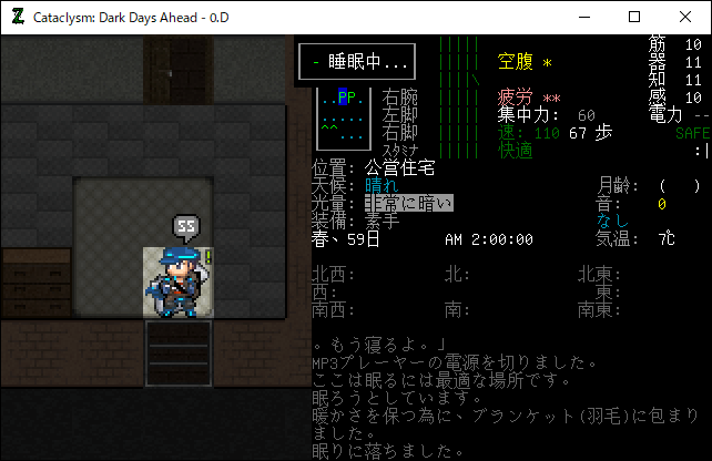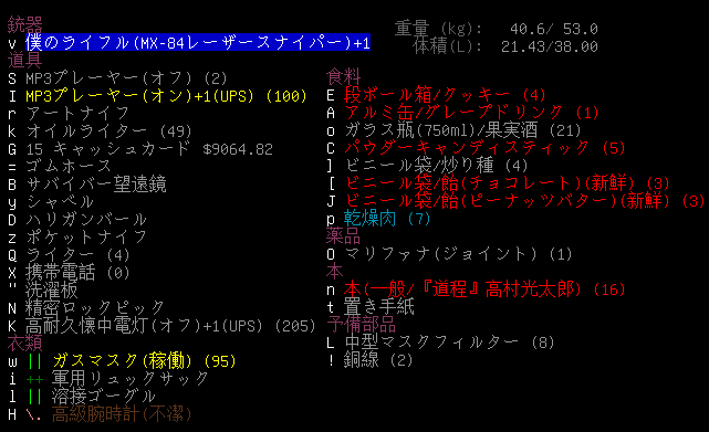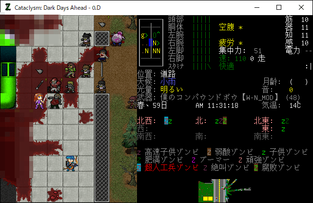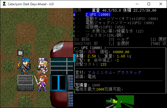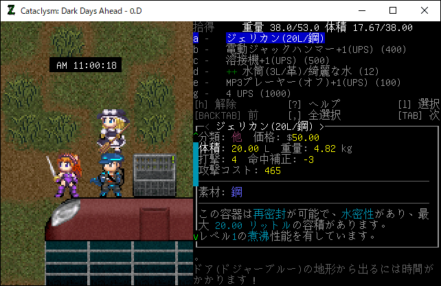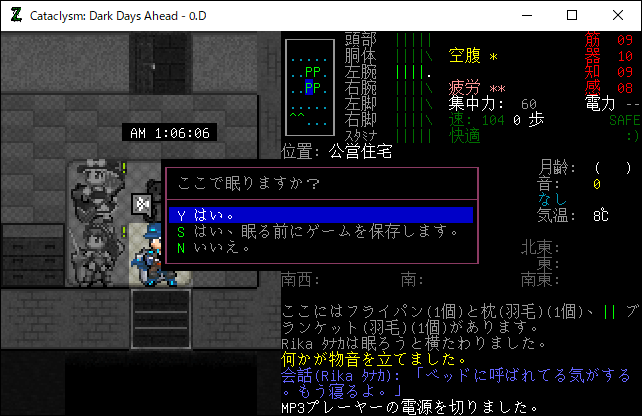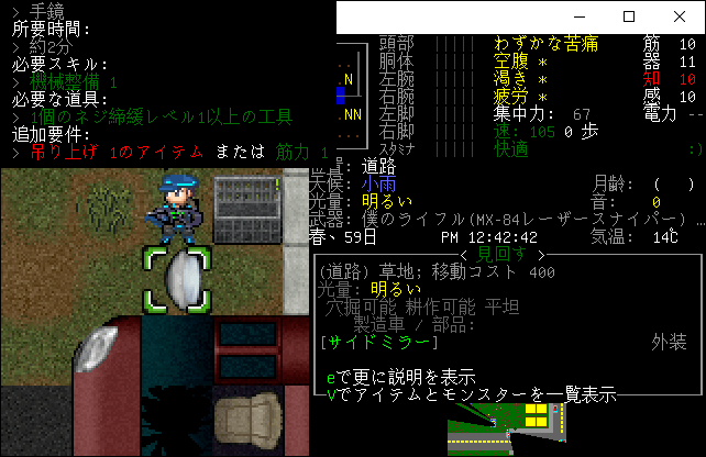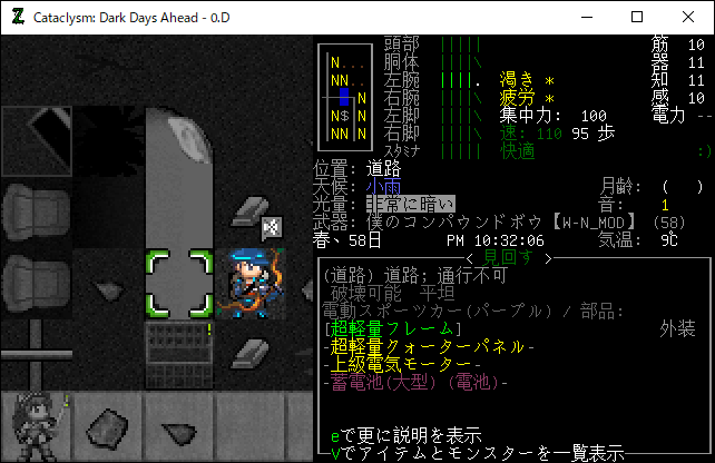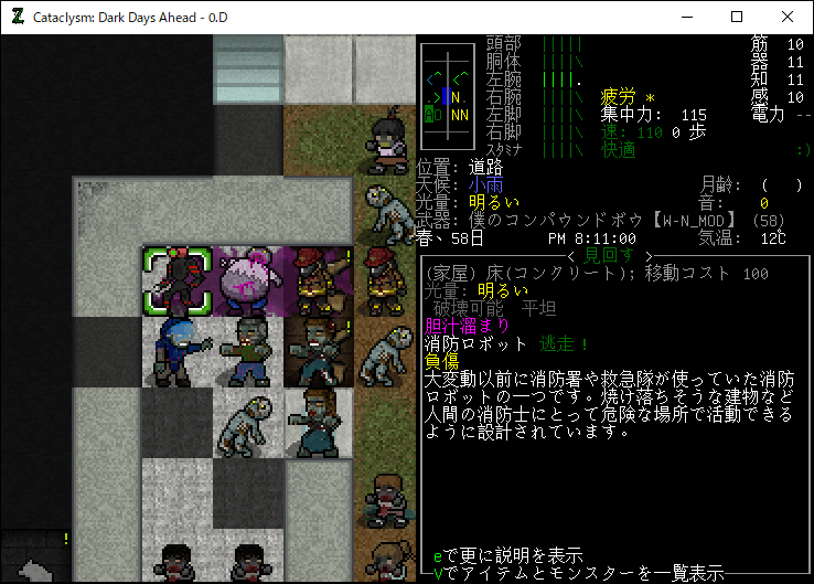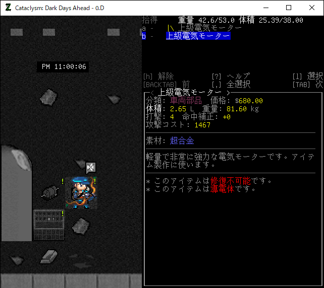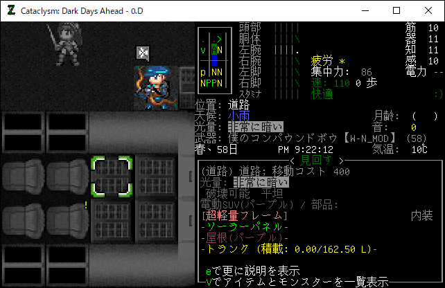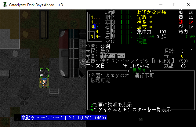 この投稿は「Cataclysm Dark Days Ahead」のプレイ日記です。毎日更新をします。目次はこちら。