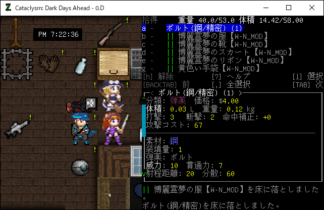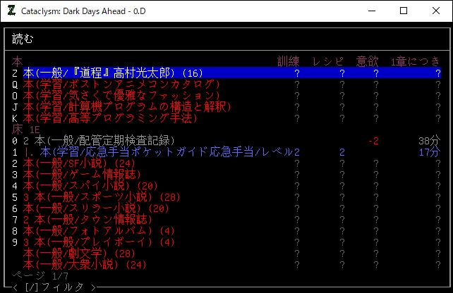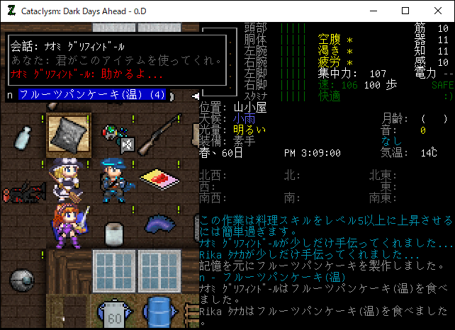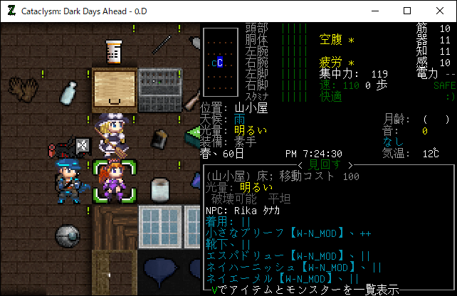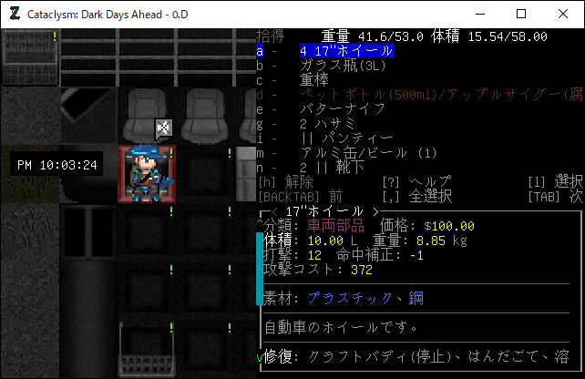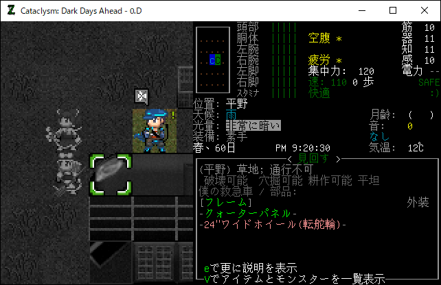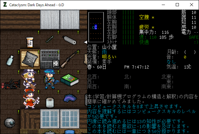 この投稿は「Cataclysm Dark Days Ahead」のプレイ日記です。毎日更新をします。目次はこちら。
