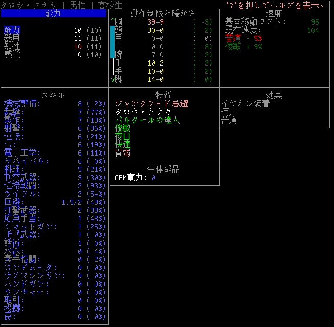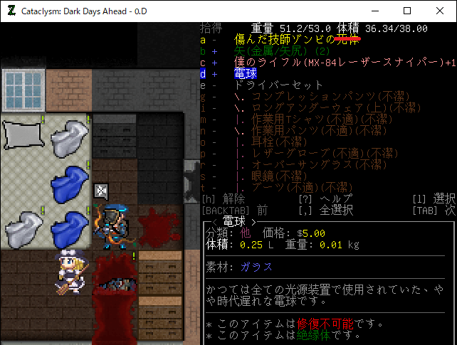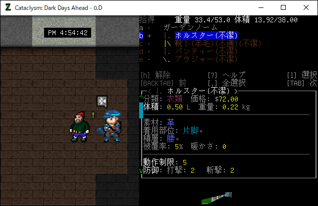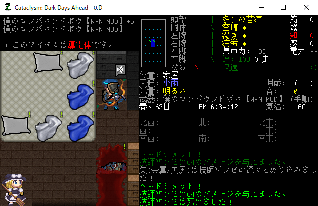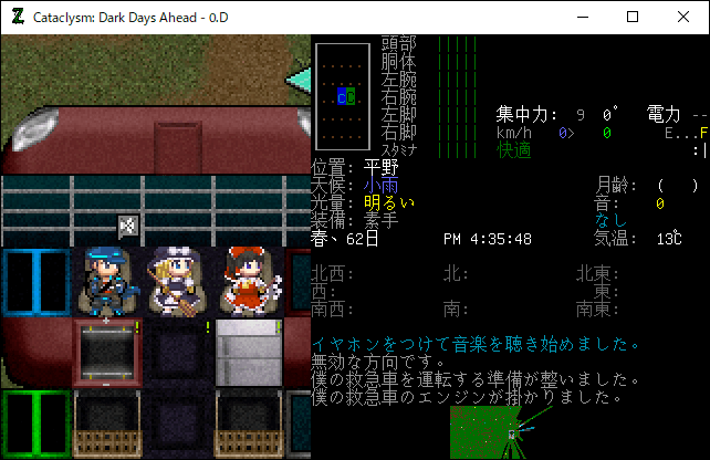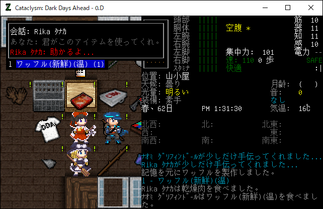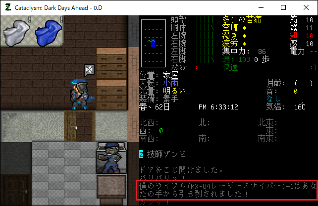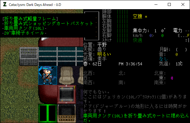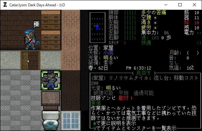 この投稿は「Cataclysm Dark Days Ahead」のプレイ日記です。毎日更新をします。目次はこちら。