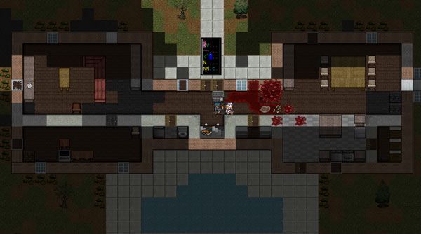 目的地の家屋は横にマップ2つ分の広さがある建物だった。地下室は無いけど2階への階段があります。この場所は地域運営学校に近いので緊張する。