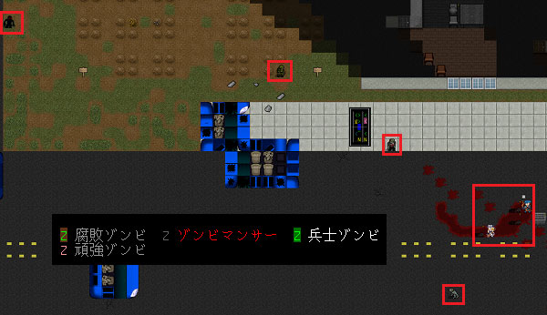 3軒目に向かう途中で特殊ゾンビの集団に襲撃されてしまった。ゾンビマンサー君は強いし嫌いなんだよねえ。北西の場所に雑魚ゾンビの集団も見えます。画像枚数が多くなったので、こいつらを倒したらいったん救急車に戻ることにします。