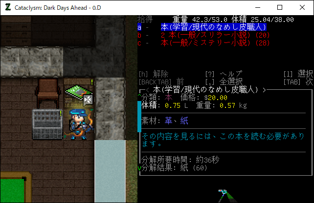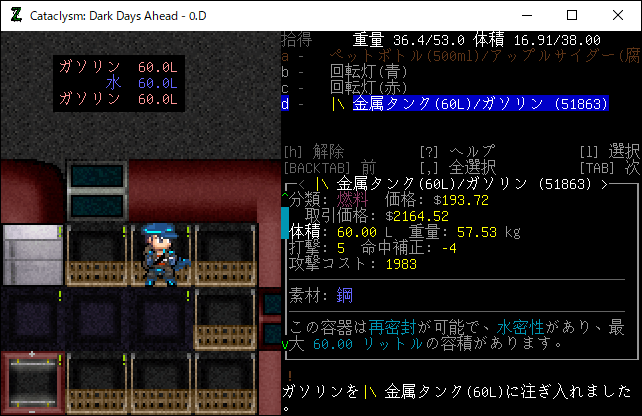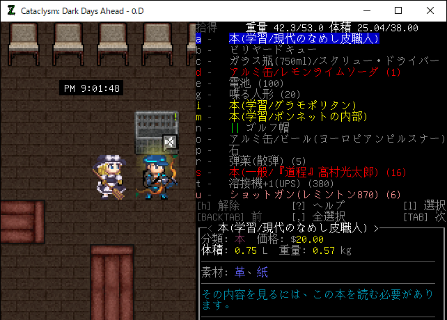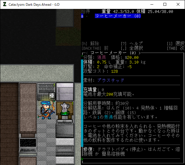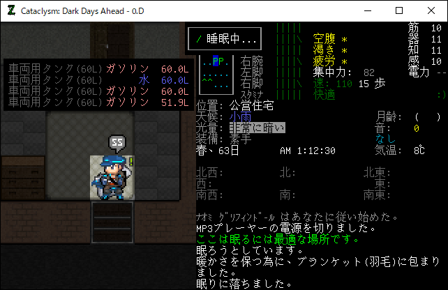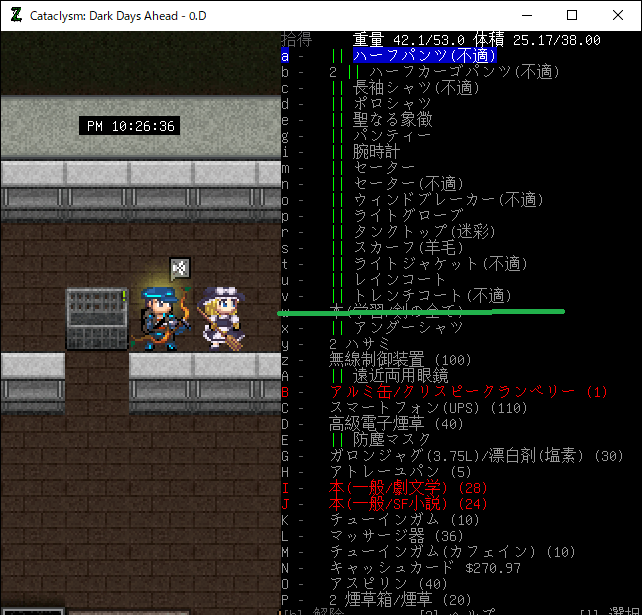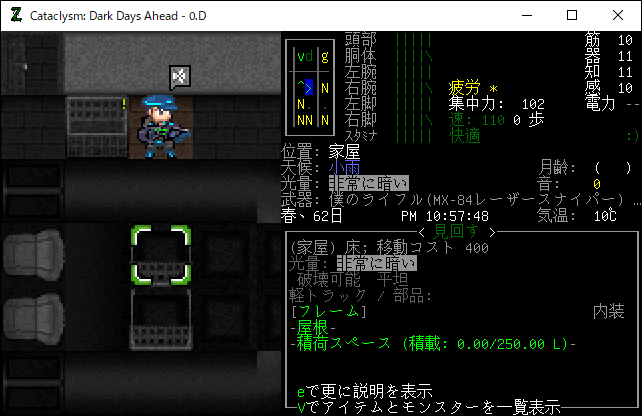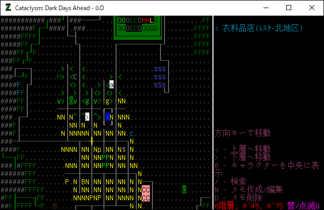 この投稿は「Cataclysm Dark Days Ahead」のプレイ日記です。毎日更新をします。目次はこちら。