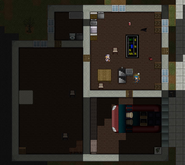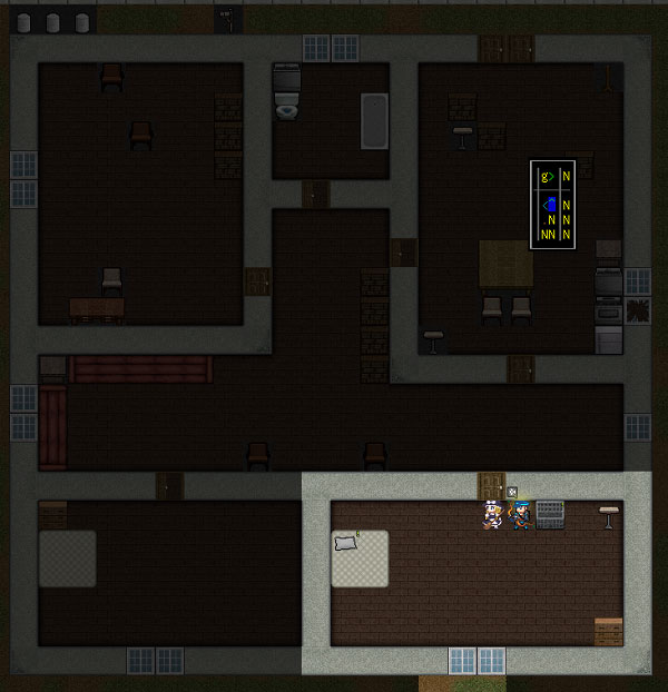 仮拠点の公営住宅に戻って睡眠を取りましょう。そろそろ仮拠点を北に移動させたくなってきたな。北地区の家屋の地下室にベッドを設置して第2の仮拠点を作るのだ。