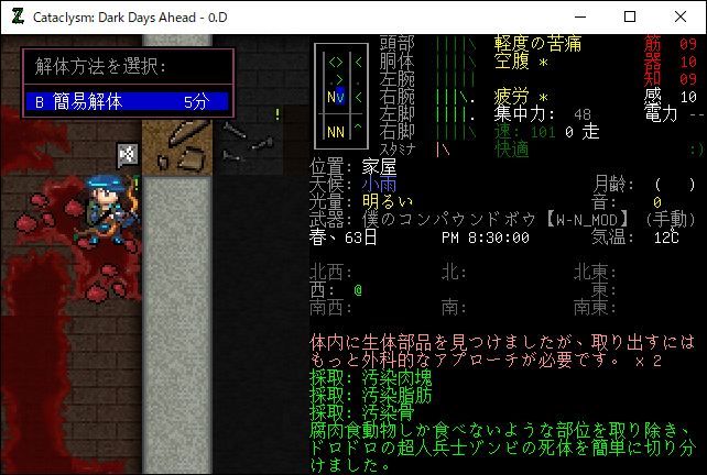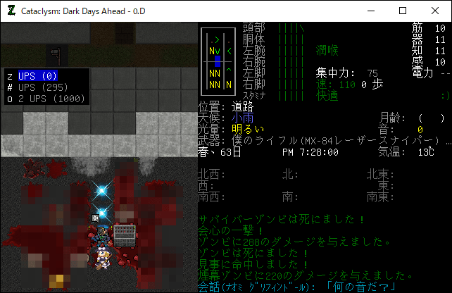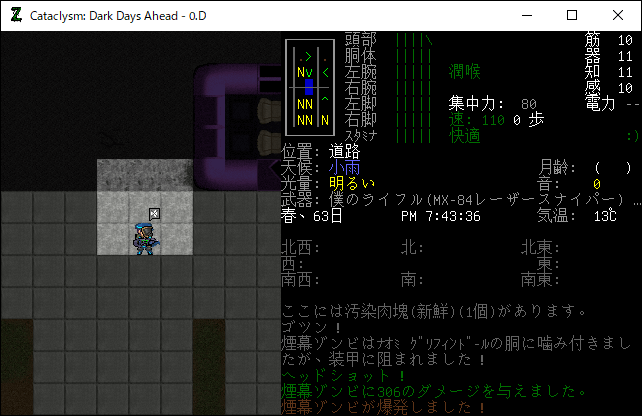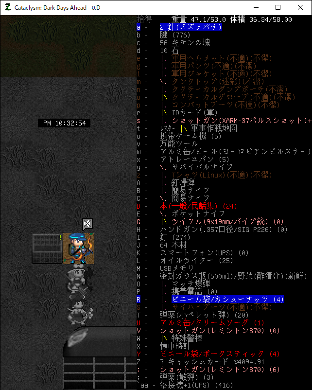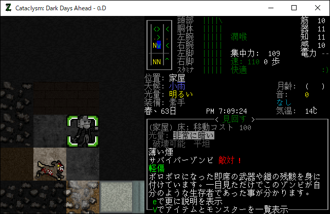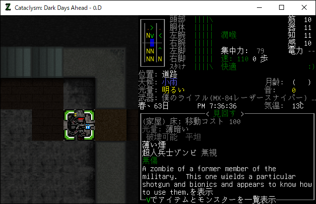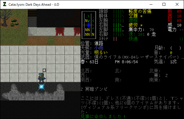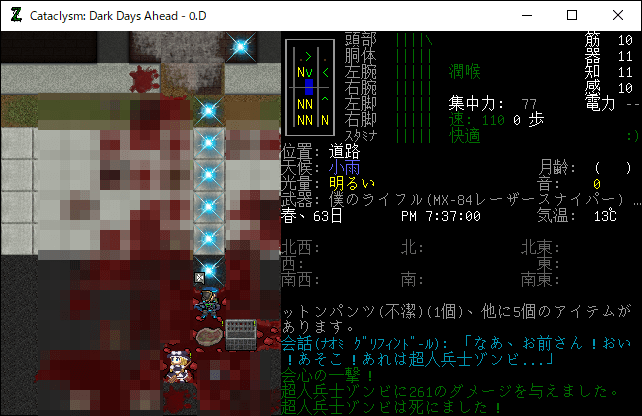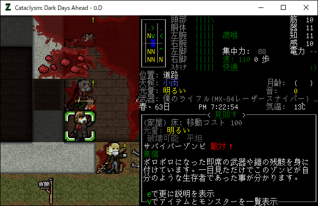この投稿は「Cataclysm Dark Days Ahead」のプレイ日記です。毎日更新をします。目次はこちら。