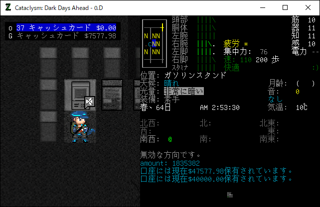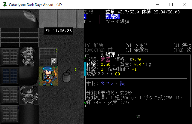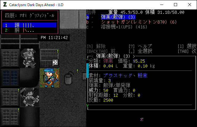 この投稿は「Cataclysm Dark Days Ahead」のプレイ日記です。毎日更新をします。目次はこちら。
