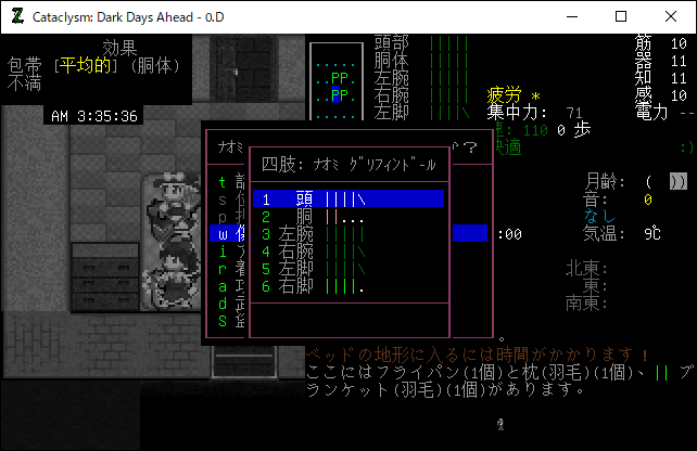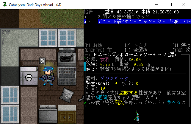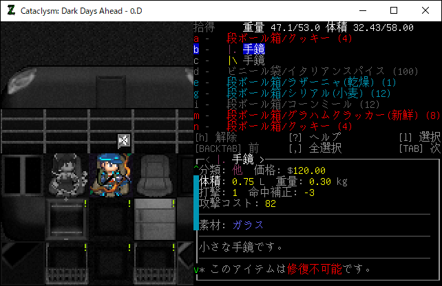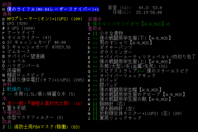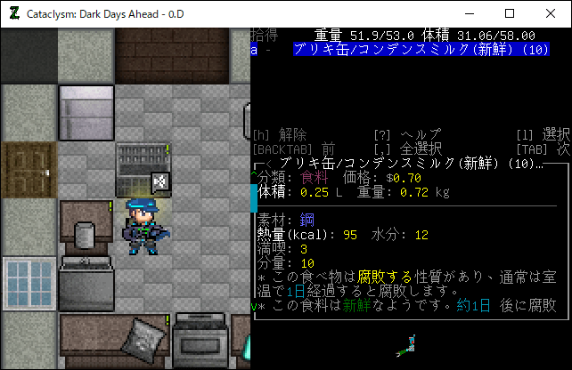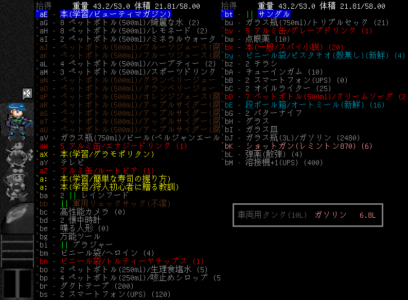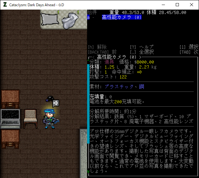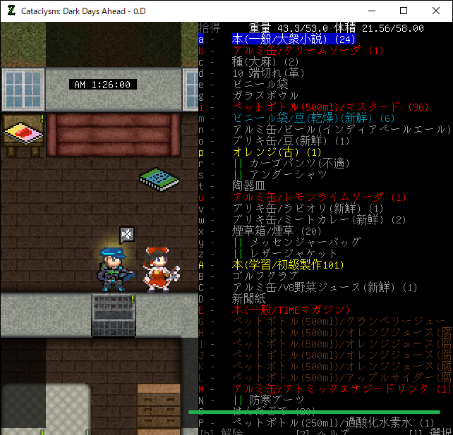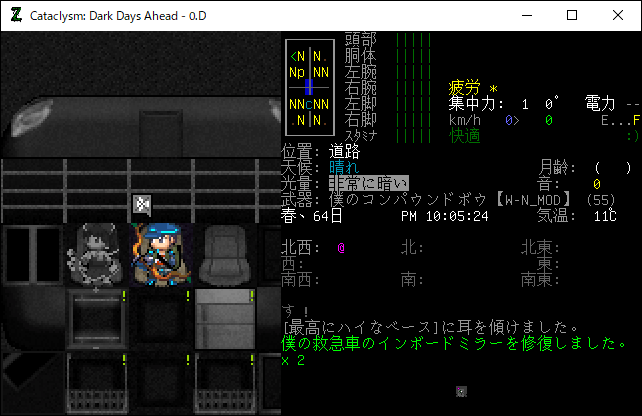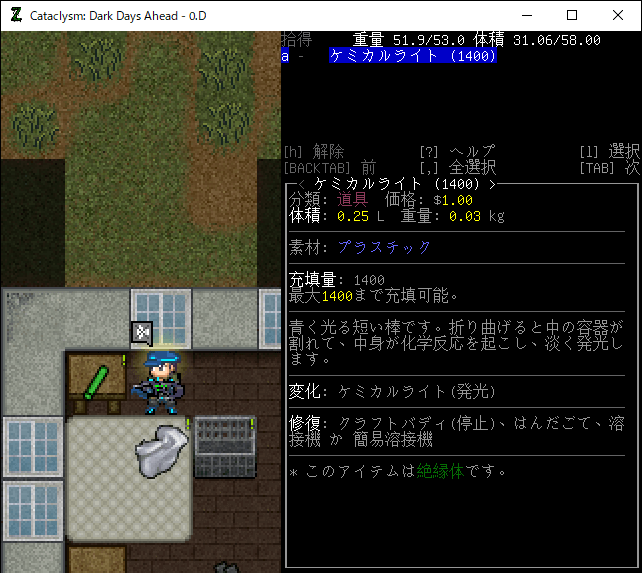 この投稿は「Cataclysm Dark Days Ahead」のプレイ日記です。毎日更新をします。目次はこちら。