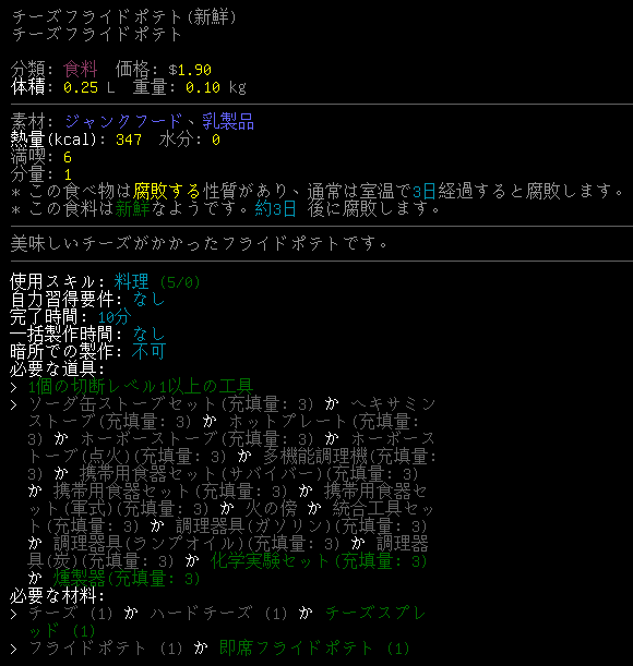 チーズフライドポテトを調理してケモミミにあげました。ジャンクフードだが崩壊後の世界では貴重品なんだぜ。材料である『即席フライドポテト』を用意するのが大変なんだよ。