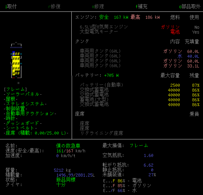 というわけで救急車の性能は上の画像になった。もしかしたら積載量を増やしすぎたかもな(笑)。まあ細部の整備は町の制圧が終わってから実行します。