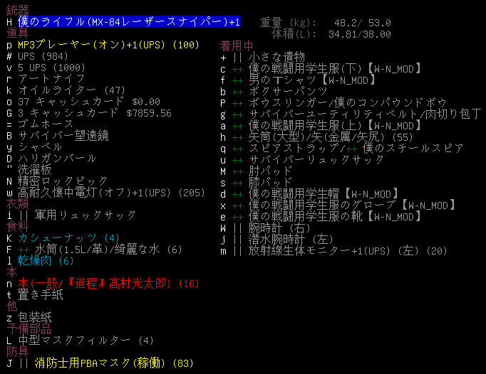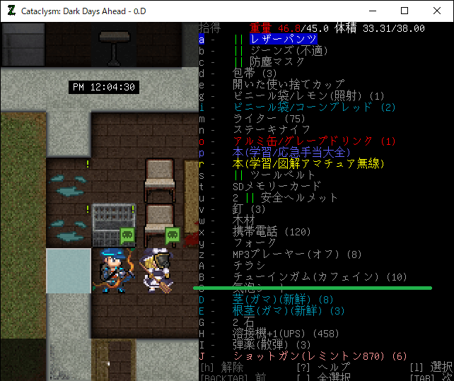 この投稿は「Cataclysm Dark Days Ahead」のプレイ日記です。毎日更新をします。目次はこちら。
