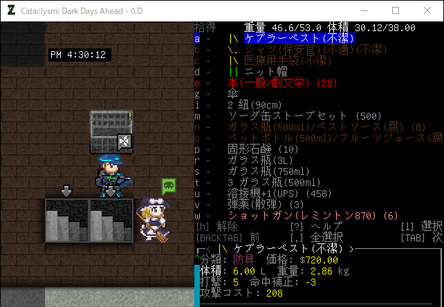 この投稿は「Cataclysm Dark Days Ahead」のプレイ日記です。毎日更新をします。目次はこちら