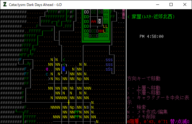 Cataclysmのプレイ日記を始めます。今回の投稿でレスターを制圧してしまおう。現在の時刻はPM3:00だ。夕方のうちに制圧が完了しそうだな。
