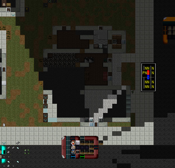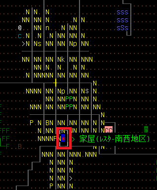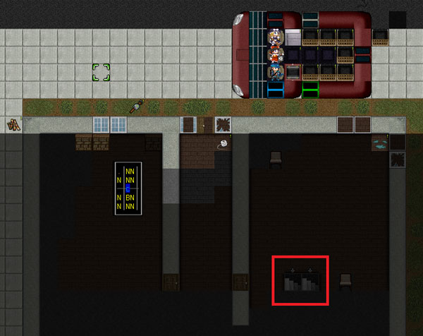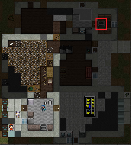 上の画像が盗賊達のアジトになる。CataclysmDDAに慣れている方なら俺が拾いたいと思っているアイテムが分かるに違いない。俺が回収したいと考えていたのは隣にある赤い物体だ。
