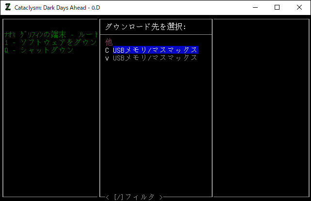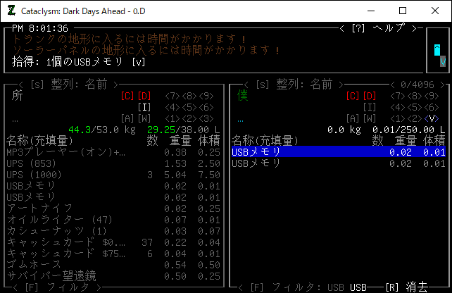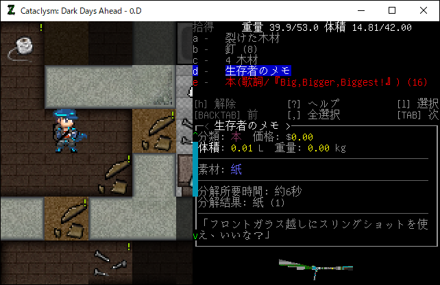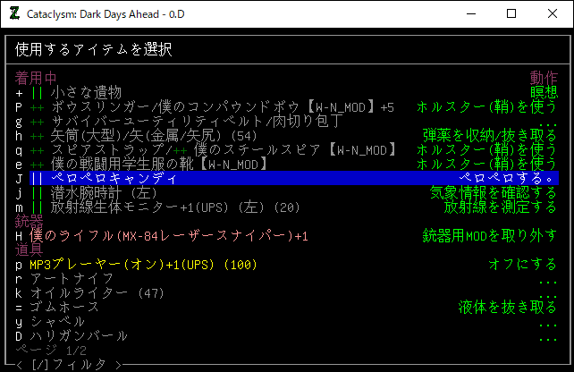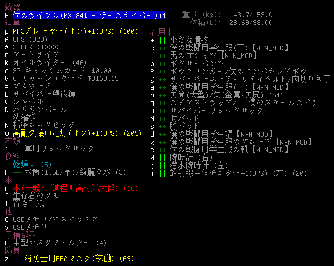 この投稿は「Cataclysm Dark Days Ahead」のプレイ日記です。毎日更新をします。目次はこちら。
