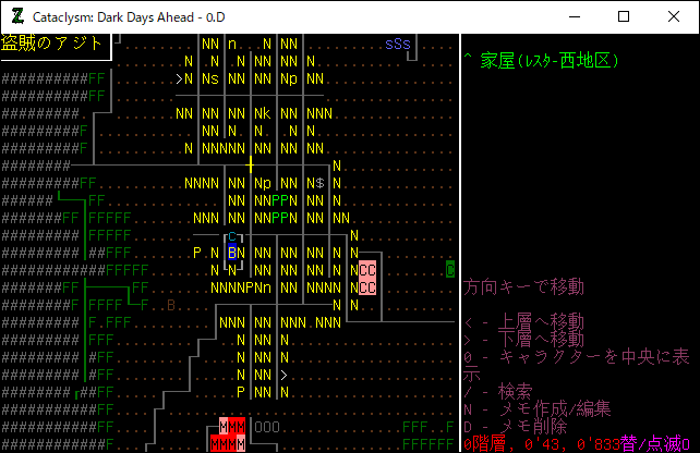 Cataclysmのプレイ日記を始めます。前回はNPCの依頼を達成しました。もうレスターの制圧は完了したしサッサと山小屋へ戻りたい。蜘蛛の巣に寄って肉塊を集めるくらいはしようかな。