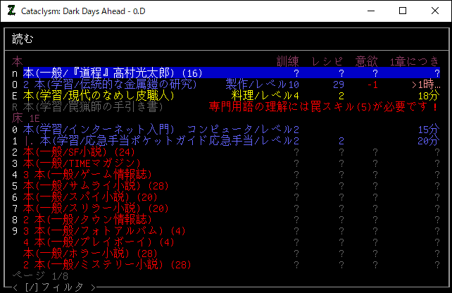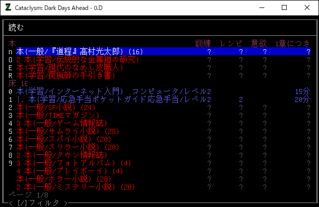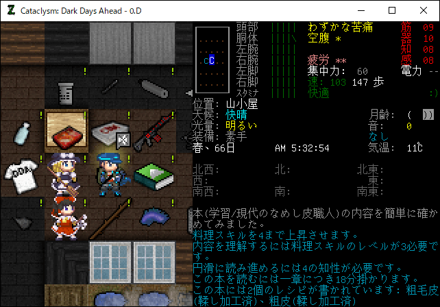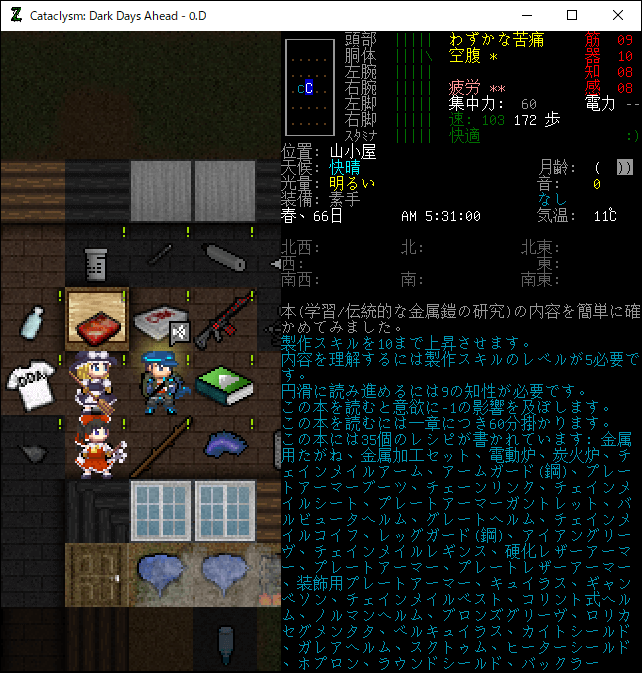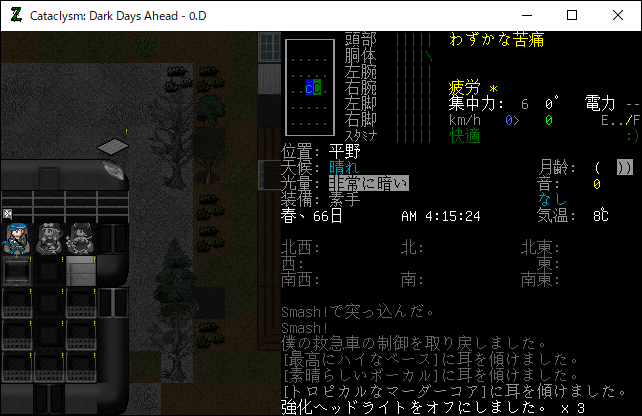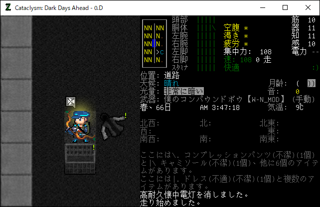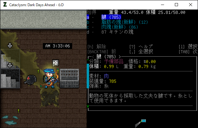 この投稿は「Cataclysm Dark Days Ahead」のプレイ日記です。毎日更新をします。目次はこちら。