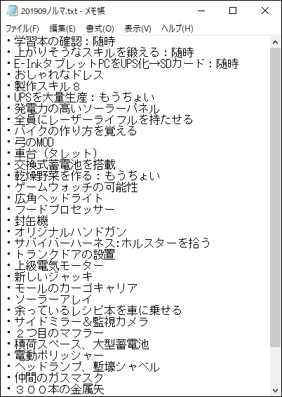 山小屋で実行したいノルマは上の画像。武装を整えたら地域運営学校に向かおう。学校の図書館から学習本を回収したらスキルを鍛えて遠征を開始するぞ。次回はタロウ・タナカ達の武装を整えます。
