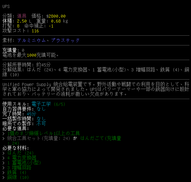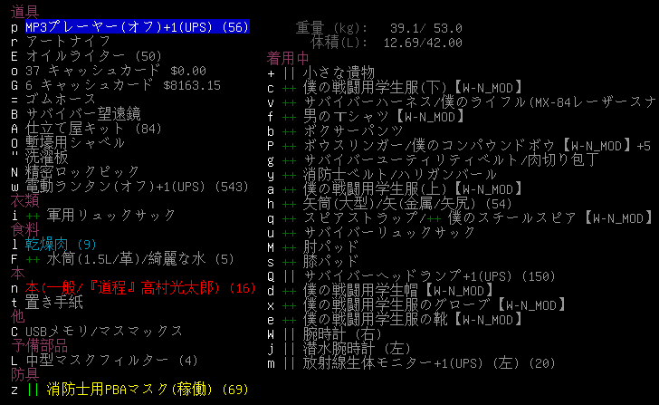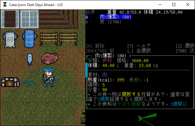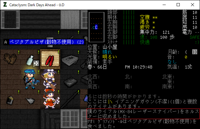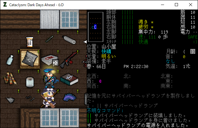 この投稿は「Cataclysm Dark Days Ahead」のプレイ日記です。毎日更新をします。目次はこちら。