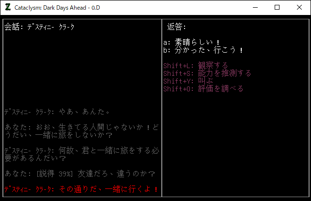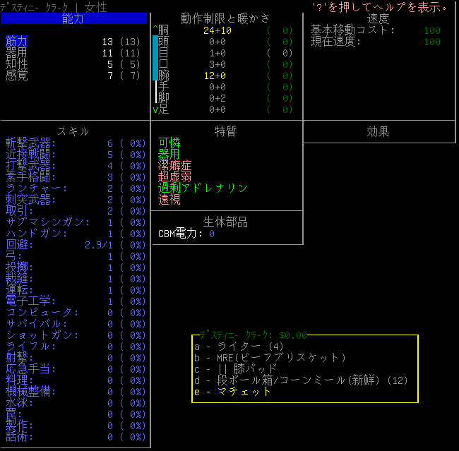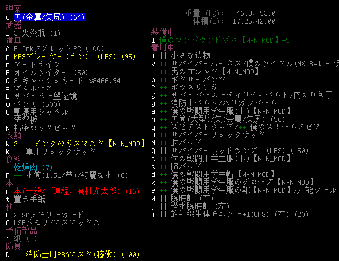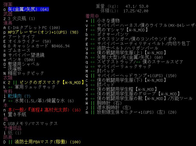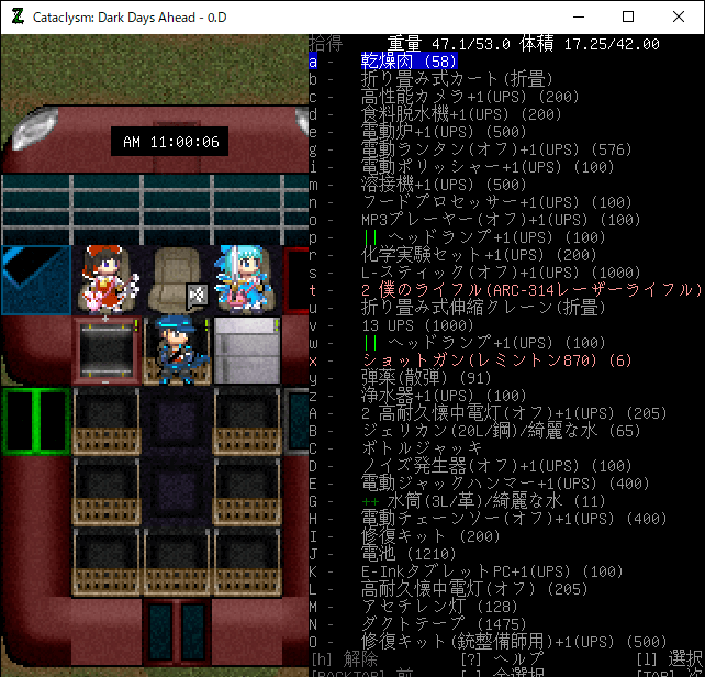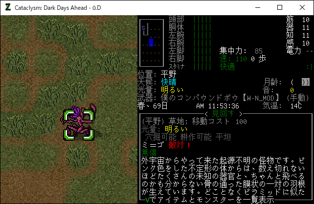 この投稿は「Cataclysm Dark Days Ahead」のプレイ日記です。毎日更新をします。目次はこちら。