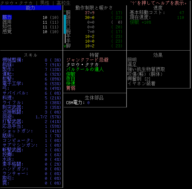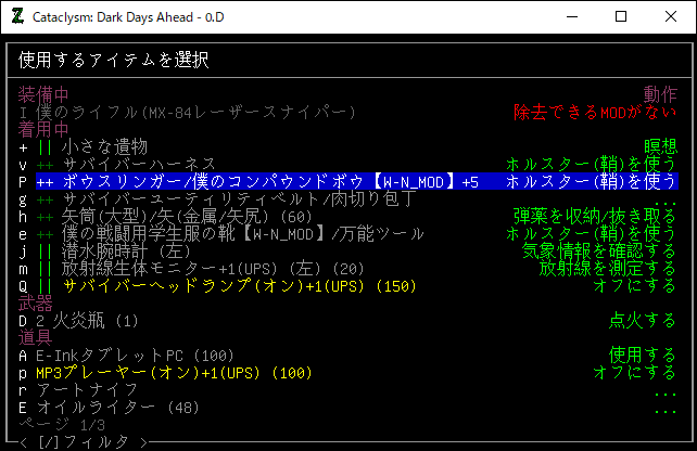 この投稿は「Cataclysm Dark Days Ahead」のプレイ日記です。毎日更新をします。目次はこちら。