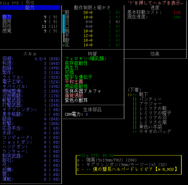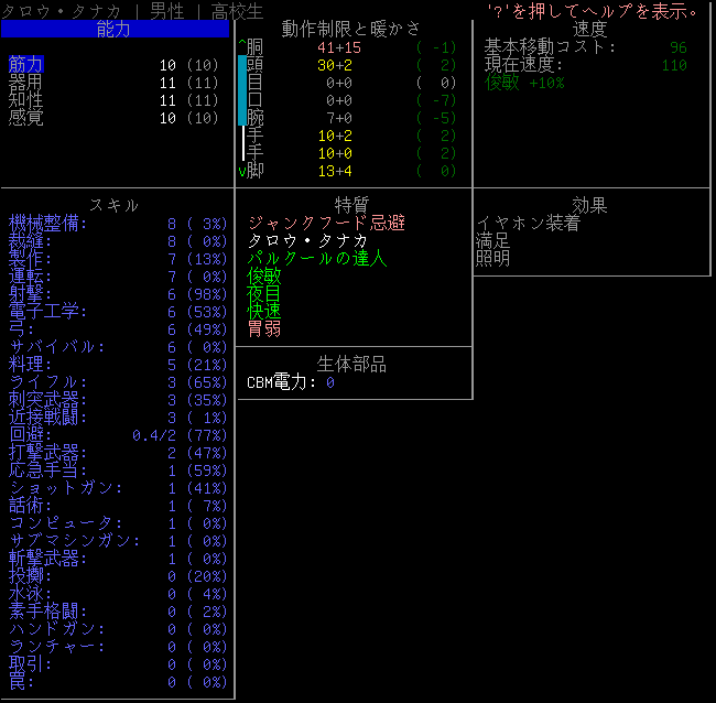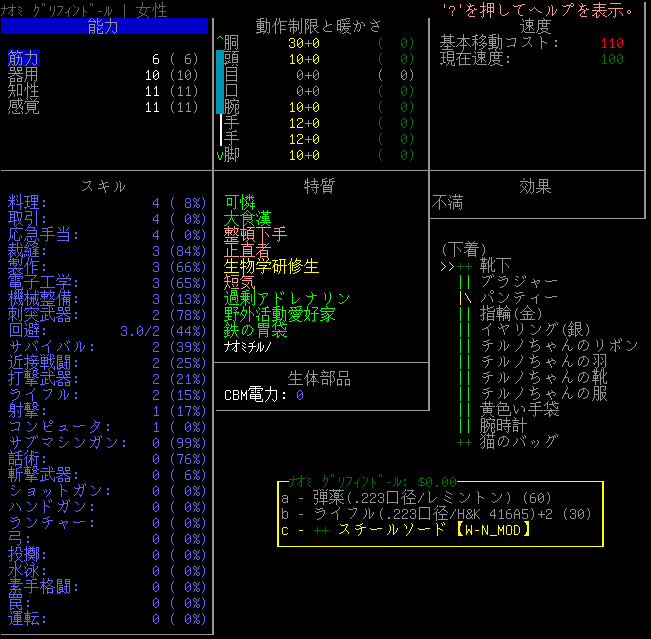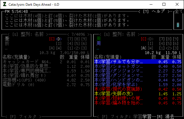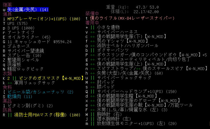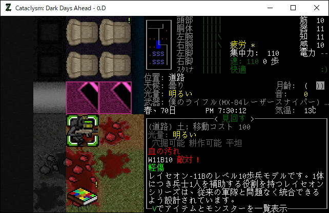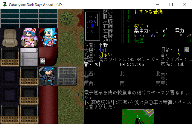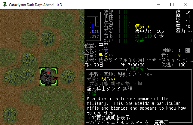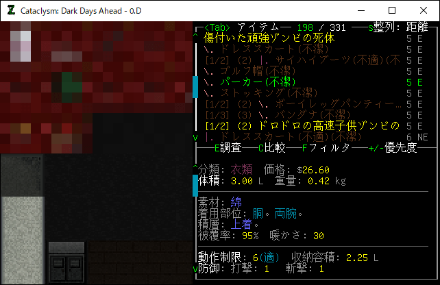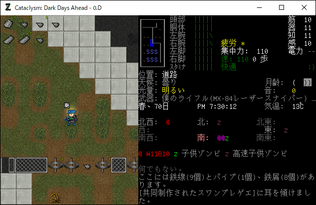 この投稿は「Cataclysm Dark Days Ahead」のプレイ日記です。毎日更新をします。目次はこちら。