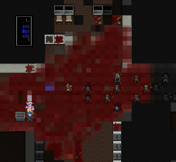 廊下に落ちている亡骸をぶっ叩いていたらゾンビの大群が出現しやがった。昨夜は敵なんていなかったのになぜだ(たぶん全員が復活したゾンビ)。よりにもよってグロテスクな廊下に現れるとは酷すぎる。モザイクをかけるのが大変です(泣)。