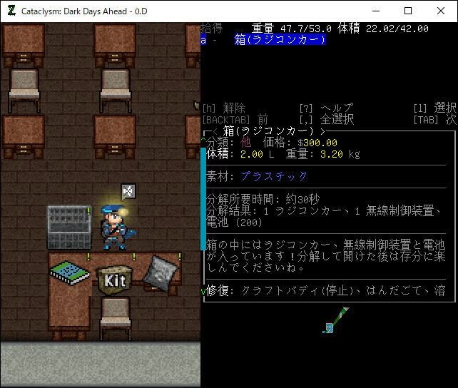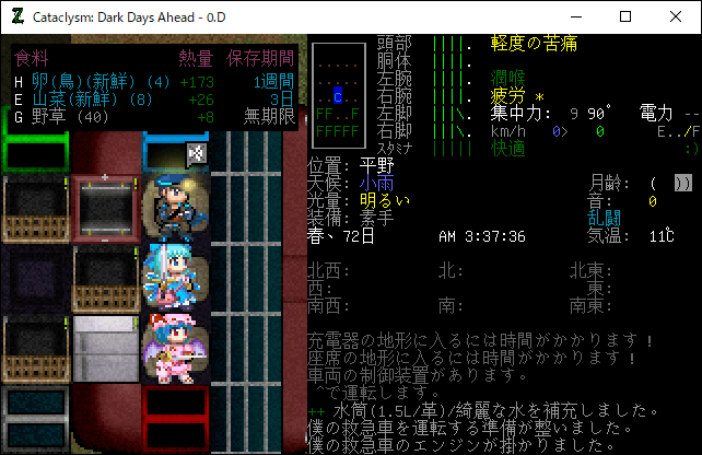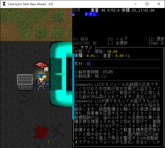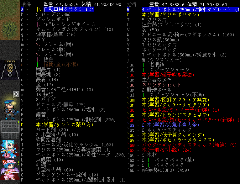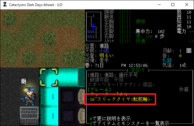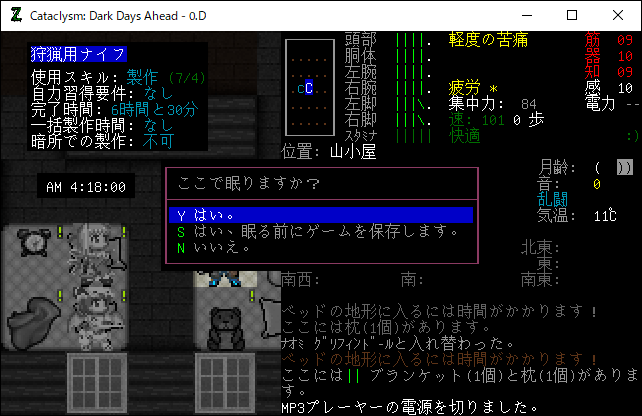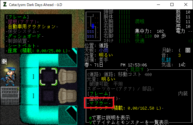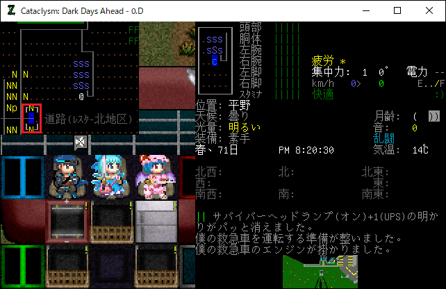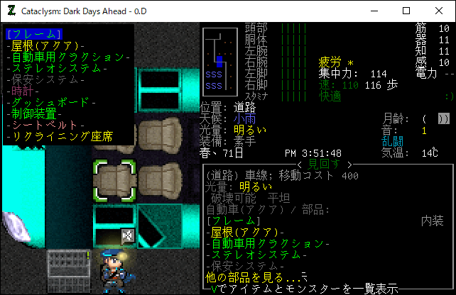この投稿は「Cataclysm Dark Days Ahead」のプレイ日記です。毎日更新をします。目次はこちら。