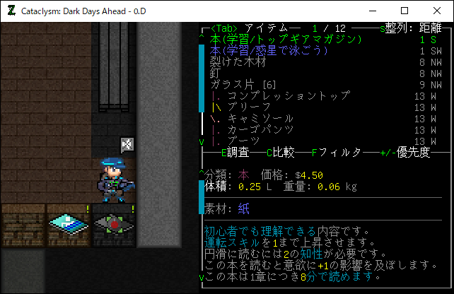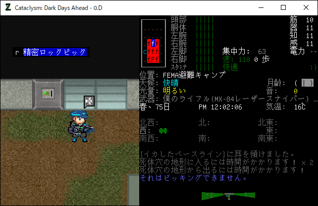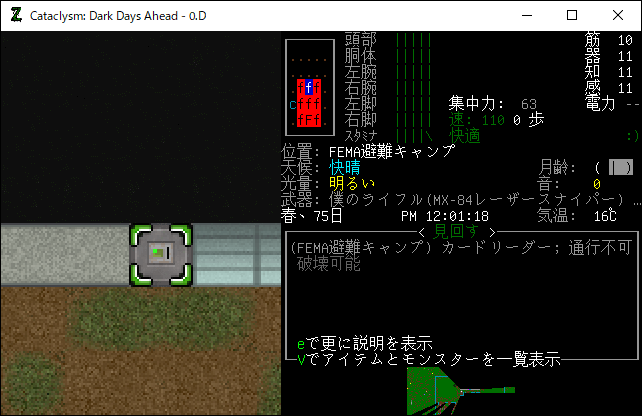 この投稿は「Cataclysm Dark Days Ahead」のプレイ日記です。毎日更新をします。目次はこちら。