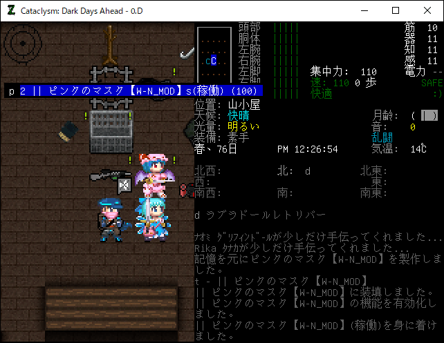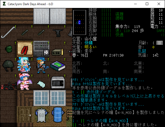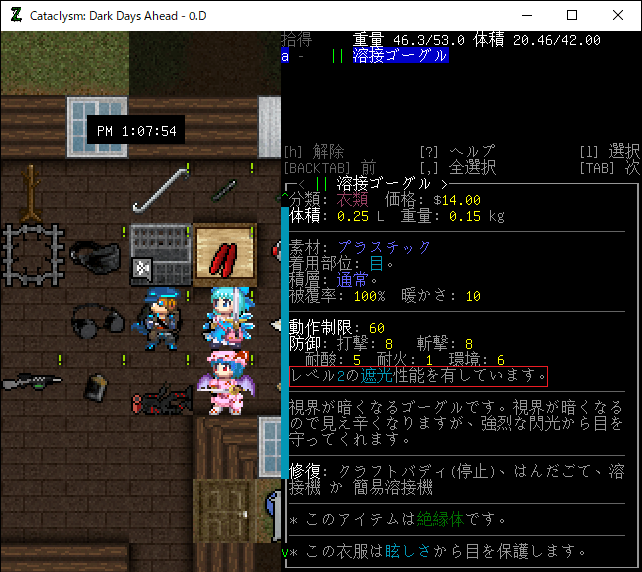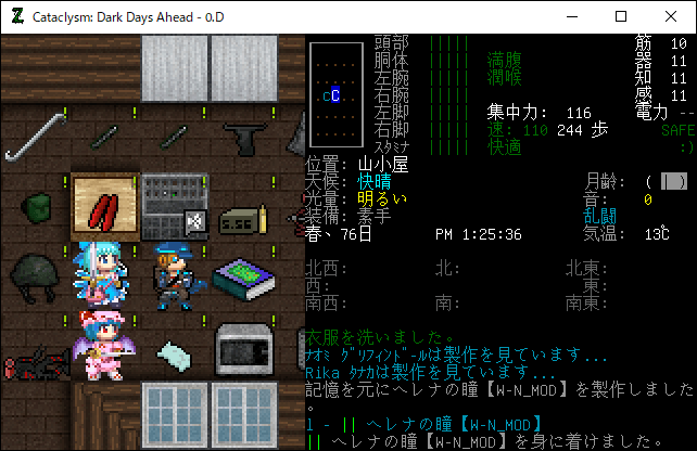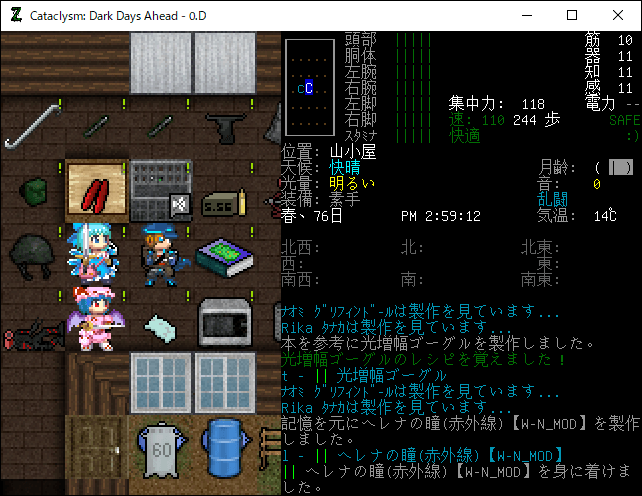 この投稿は「Cataclysm Dark Days Ahead」のプレイ日記です。毎日更新をします。目次はこちら。