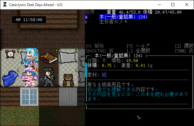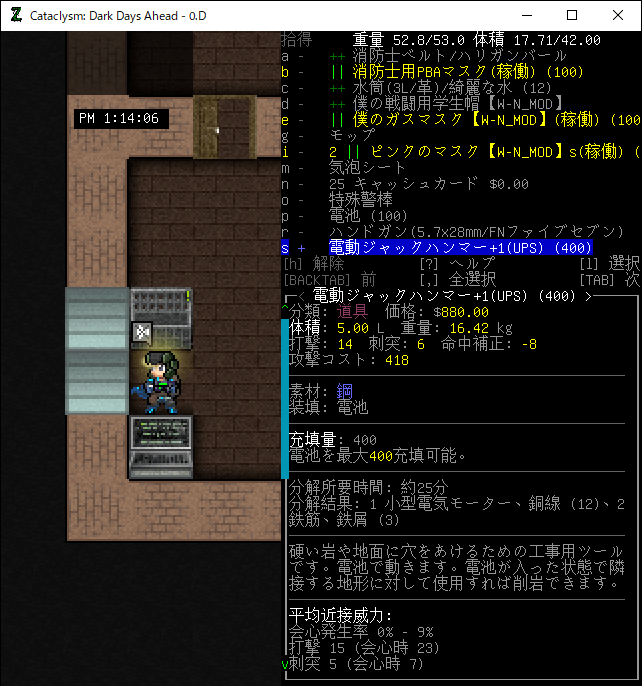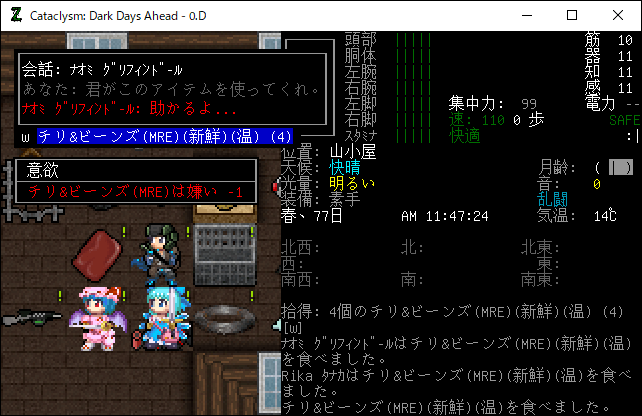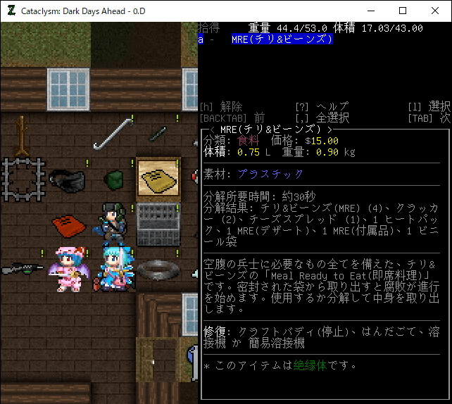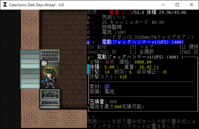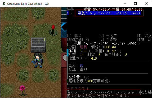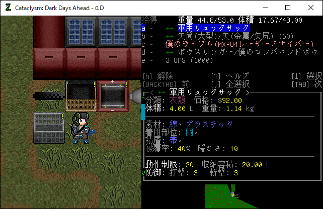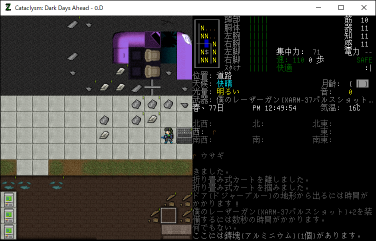 この投稿は「Cataclysm Dark Days Ahead」のプレイ日記です。毎日更新をします。目次はこちら。