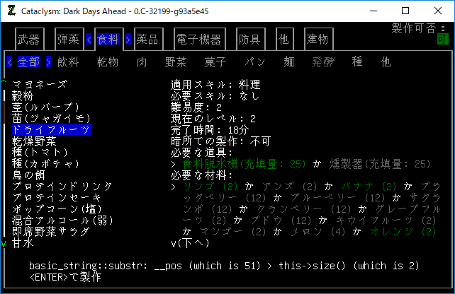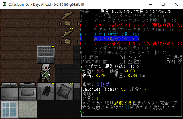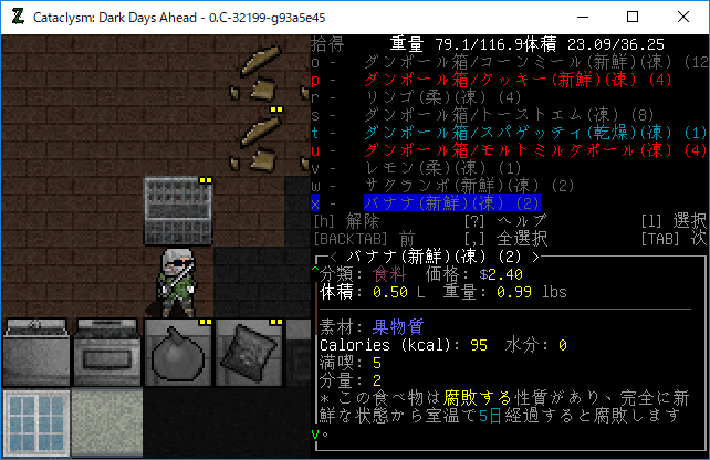 Cataclysmのプレイ日記を始めます。食料雑貨店にて食材を拾ってきました。材料がなくなるまで料理を続けてみよう。