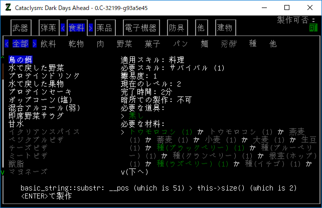 この投稿は「Cataclysm Dark Days Ahead」のプレイ日記です。毎日更新をします。目次はこちら。