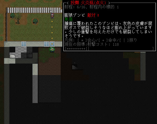 まずは南側から火炎瓶を投げることにします。南側には民家があるから優先的に浄化しておきたい。まあ1本の火炎瓶を投げれば全体に燃え広がると思うけどね。