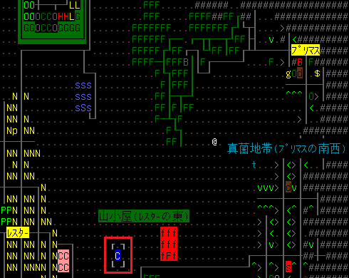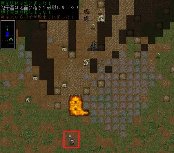 現在地はレスターの東に生成された真菌地帯だ。この場所は町に近いので非常に危険なのである。万が一にも町が真菌に汚染されたらゲームを諦めます。