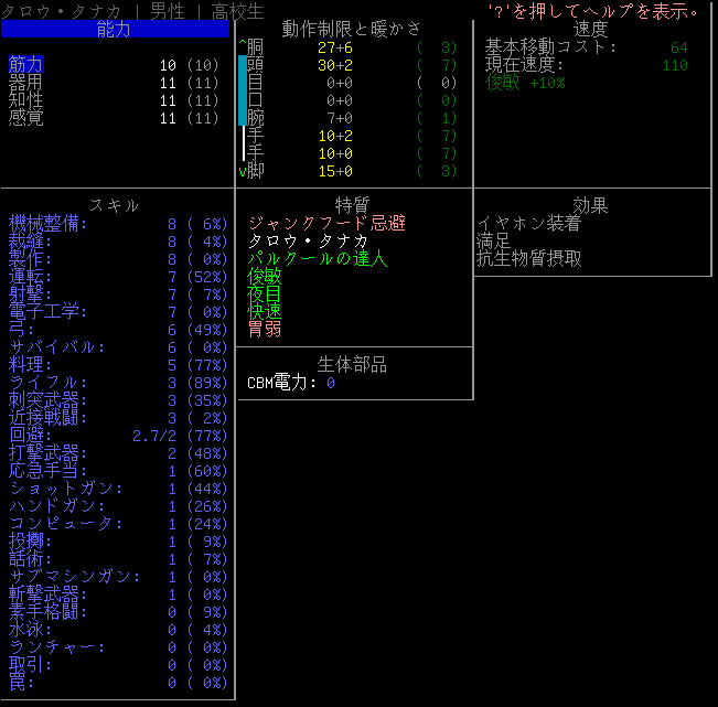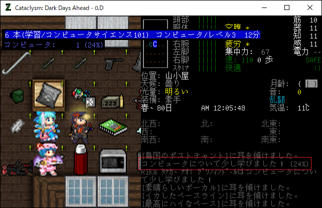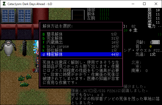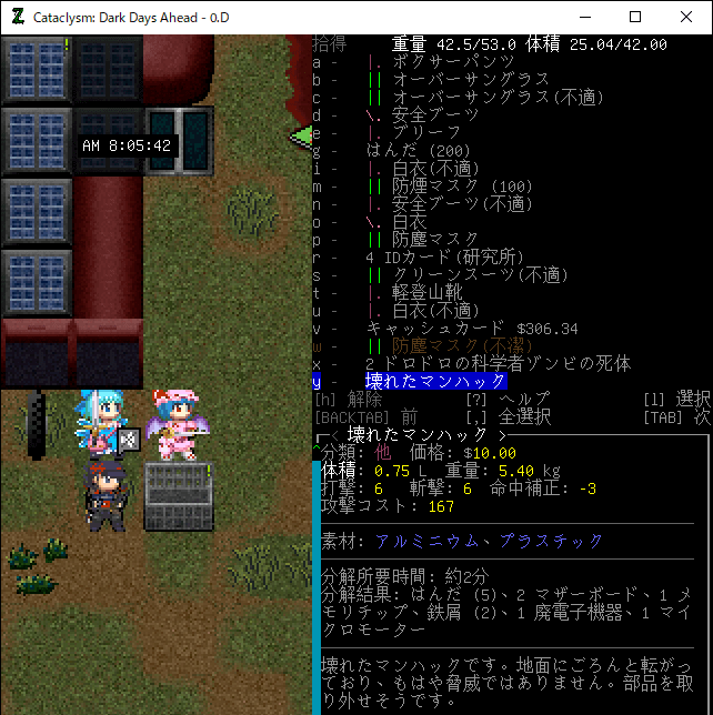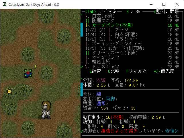 この投稿は「Cataclysm Dark Days Ahead」のプレイ日記です。毎日更新をします。目次はこちら。