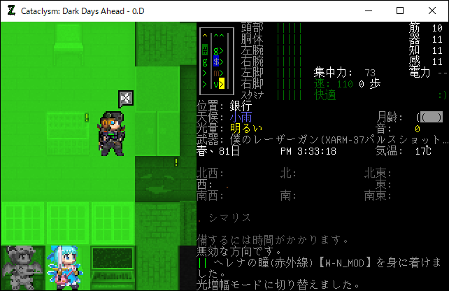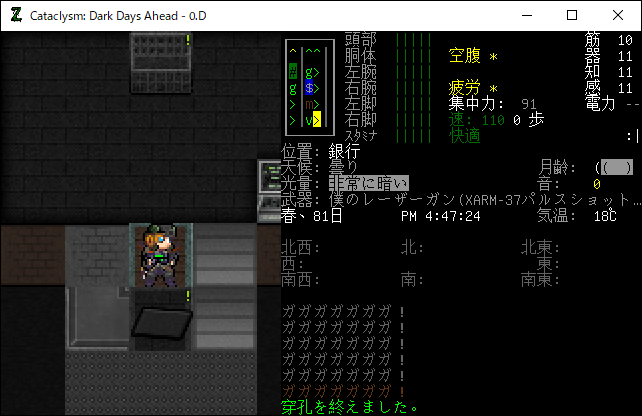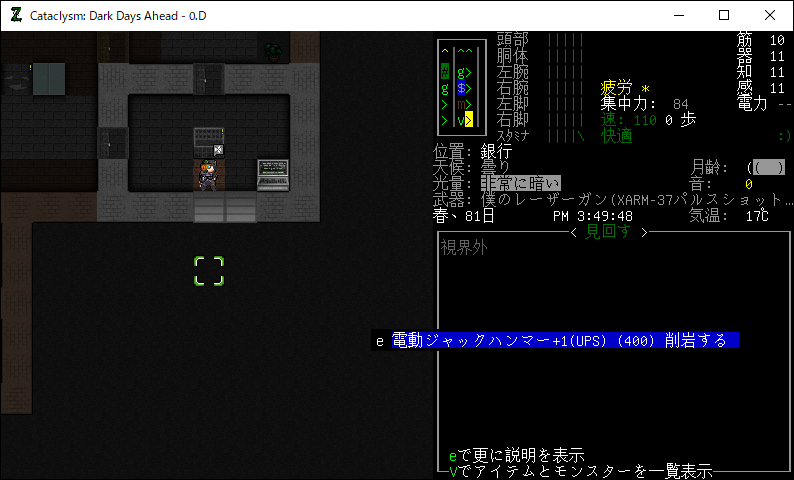 この投稿は「Cataclysm Dark Days Ahead」のプレイ日記です。毎日更新をします。目次はこちら