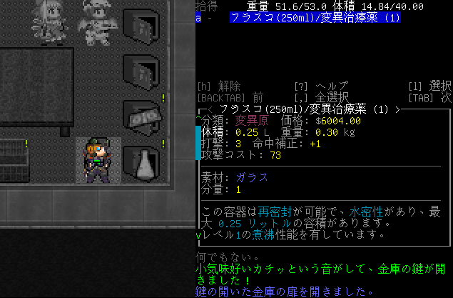 4個目の金庫から変異治療薬をゲットしました。うーむ、大当たりではないけどハズレでもない。リアクションに困る渋いツモだった。