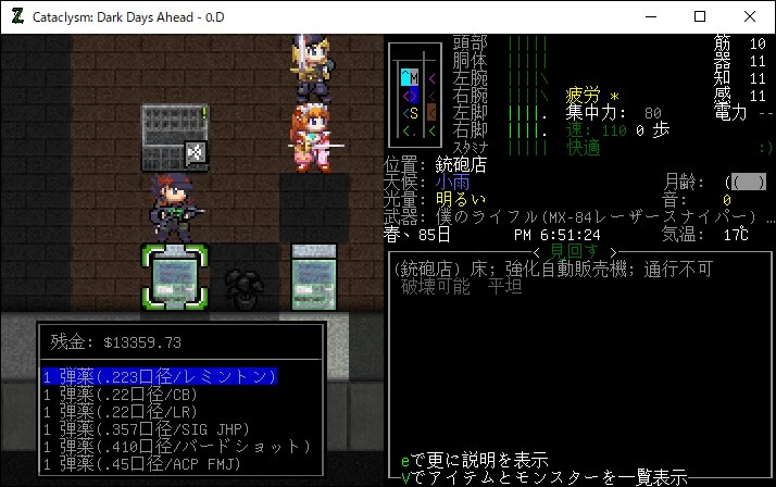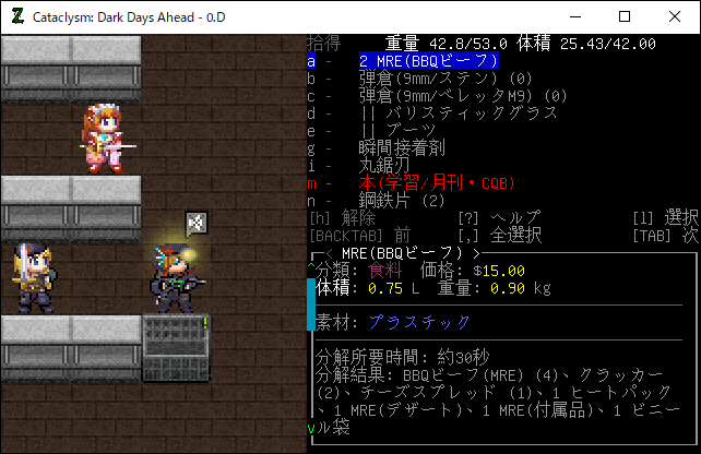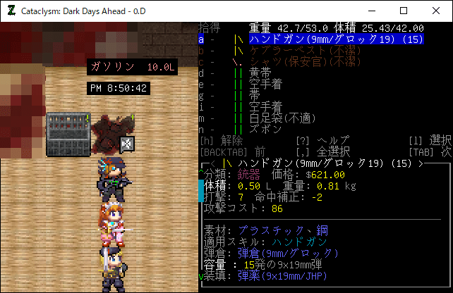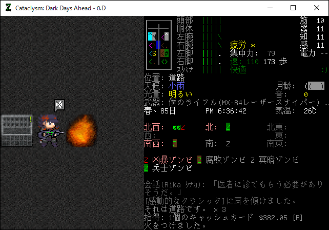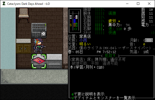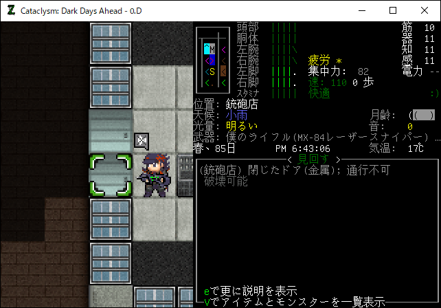 この投稿は「Cataclysm Dark Days Ahead」のプレイ日記です。毎日更新をします。目次はこちら。