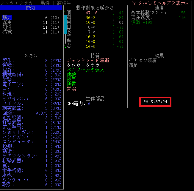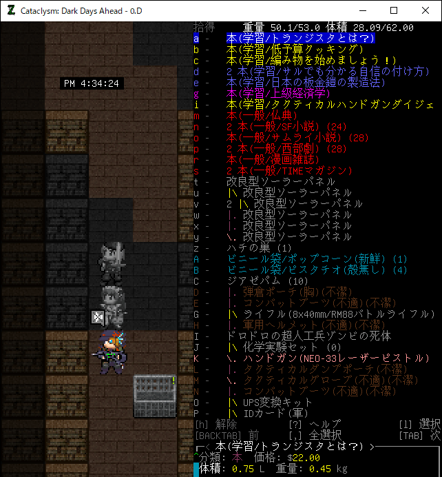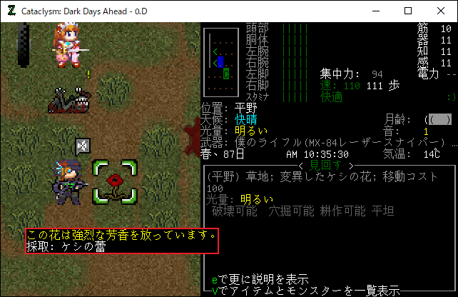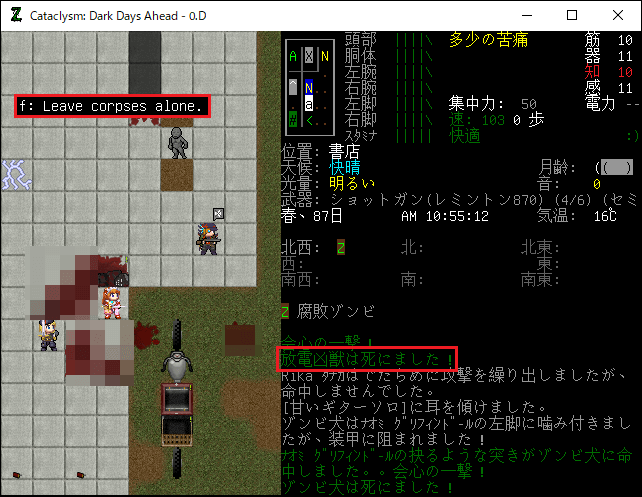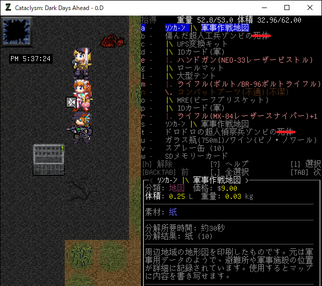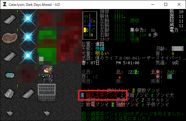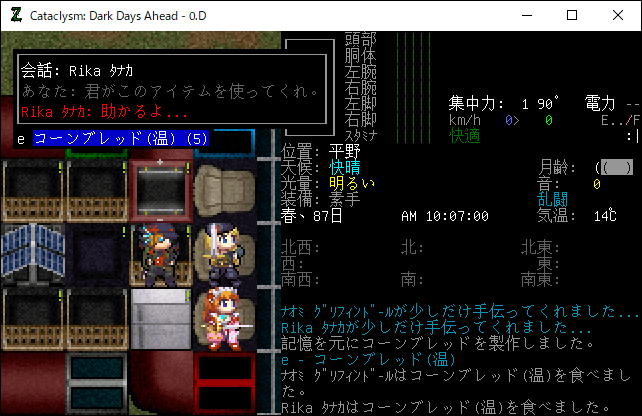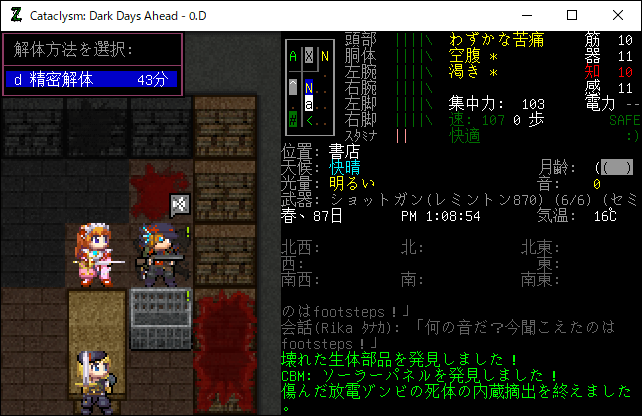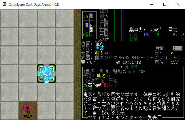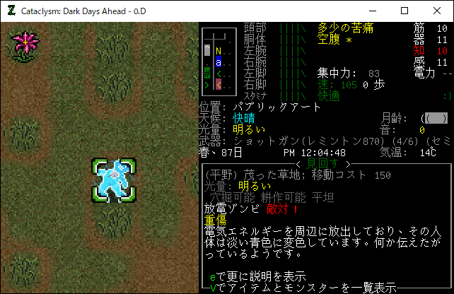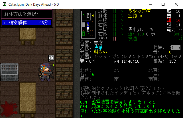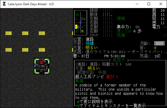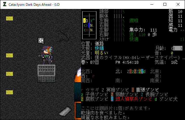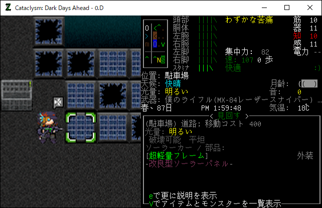 この投稿は「Cataclysm Dark Days Ahead」のプレイ日記です。毎日更新をします。目次はこちら。