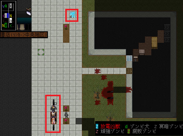 最初に消化したいノルマは『放電凶獣からCBMを回収』です。前回の投稿で最後に訪問した書店に向かいましょう。あの書店の近くに放電凶獣と放電ゾンビがいたはずです。