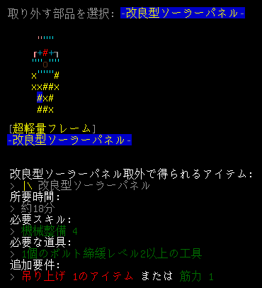 ソーラーカーから7個の改良型ソーラーパネルを回収しました。救急車に取り付ければUPSの充電が捗るに違いない。それじゃあ次のノルマを消化しましょう。