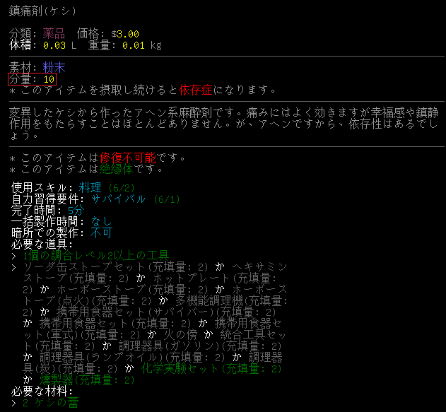 狭い地下室を無傷のまま進むのは無理だと思われる。アポフィスと戦う際には苦痛により速度が激減しているかもしれません。強力な鎮痛効果がある『鎮痛剤(ケシ)』をクラフトします。コツコツと平野から『ケシの蕾』を回収していたのだ。