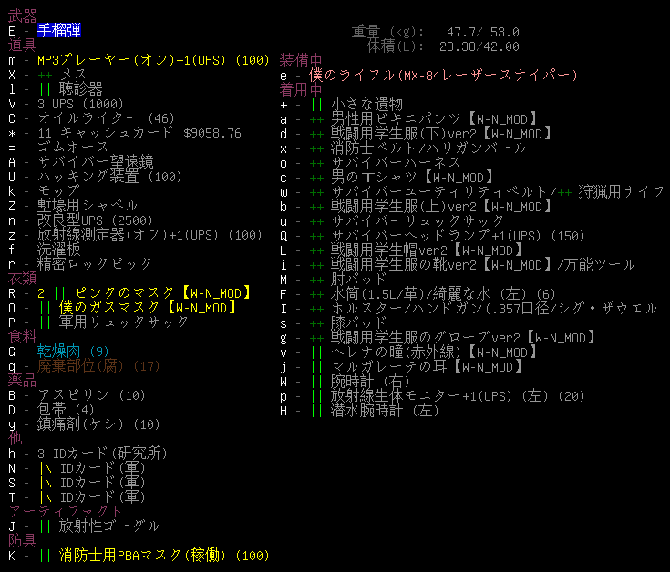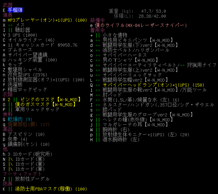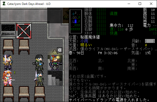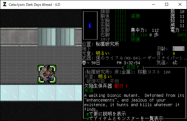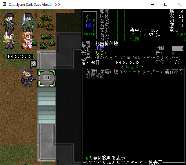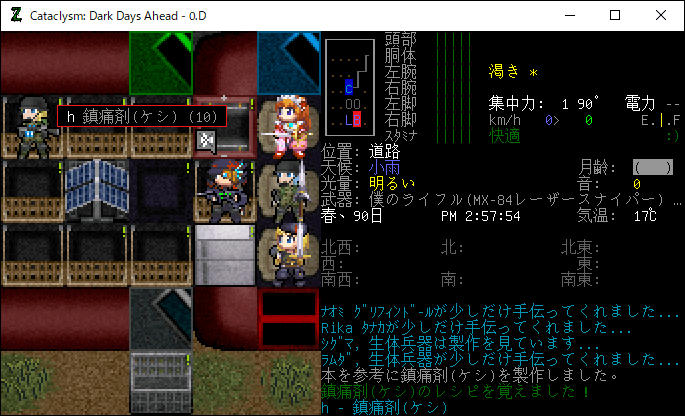 この投稿は「Cataclysm Dark Days Ahead」のプレイ日記です。毎日更新をします。目次はこちら。
