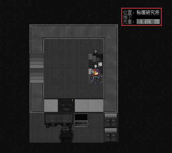 地上から地下室を覗いてみました。どうやら敵はいないようだぞ。この地下室の名称は『秘匿研究所』なんだってさ。仲間を連れて降りても即死することは無さそうだ。狭い部屋での戦闘になるだろうから仲間に援護してもらわないと厳しだろうね。