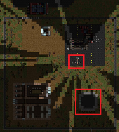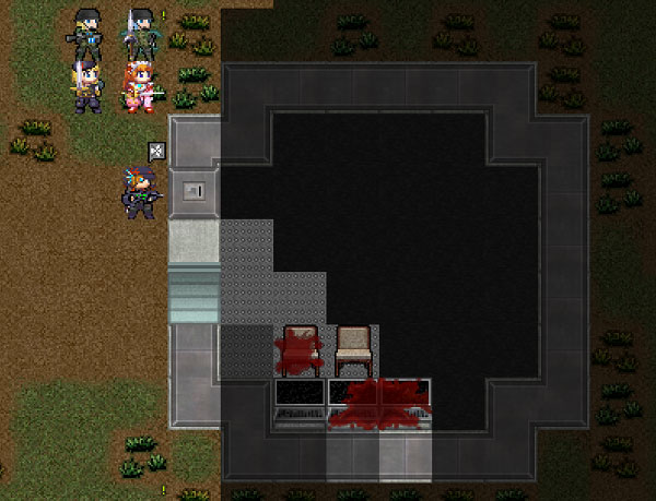 タレットが恐ろしいので斜めからシャッターを開けました。うーむ、斜めからの視界では内部の様子がよく分からない。『X』コマンドを使って中を覗いてみましょう。