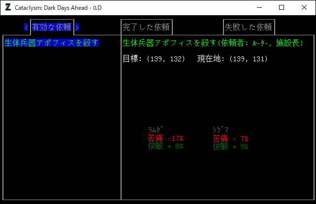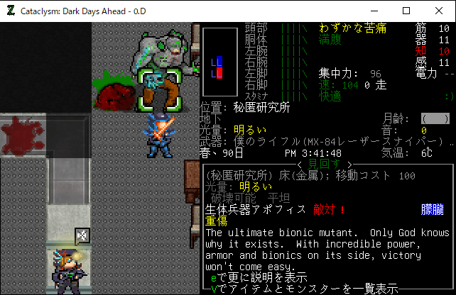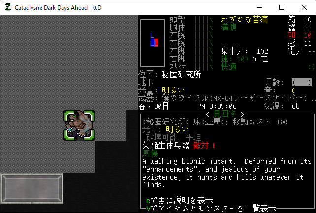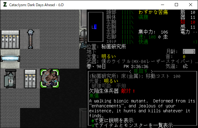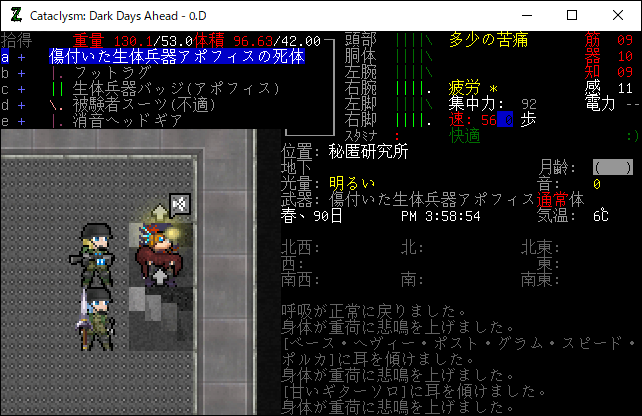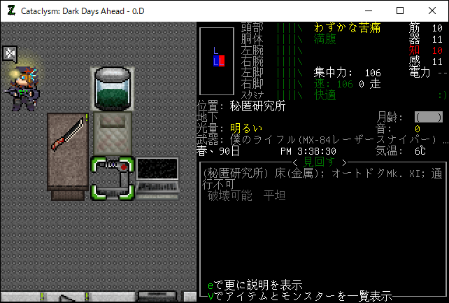 この投稿は「Cataclysm Dark Days Ahead」のプレイ日記です。毎日更新をします。目次はこちら。