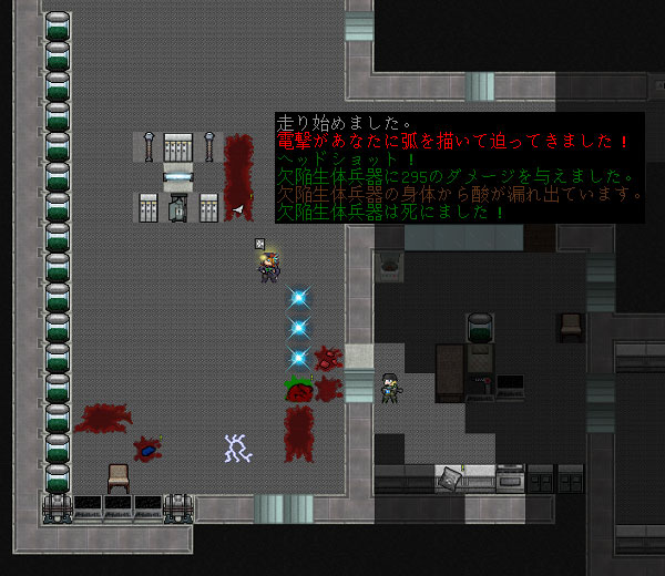 秘匿研究所は予想していたよりも遙かに広い施設だった。しかも部屋を開けると必ず欠陥生体兵器がいるので手こずります。電撃のせいで探索が遅々として進まない。