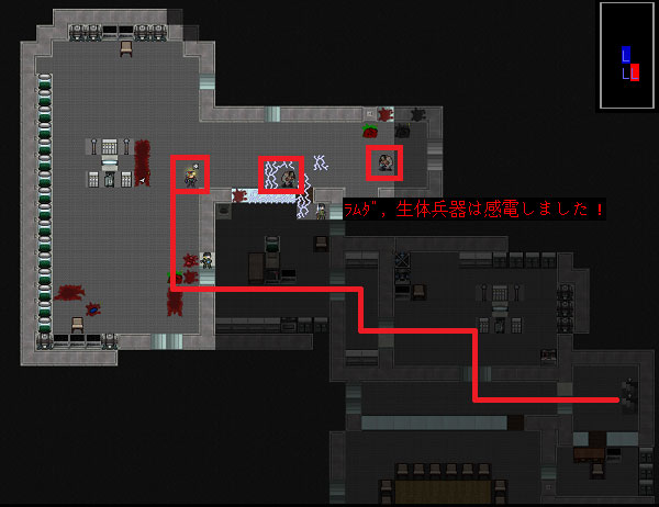 少しずつだけど秘匿研究所のマップが分かってきました。つーか、シグマとラムダが攻撃をしてくれないから困っている。電撃をくらいすぎて能力値が激減しているんじゃないの。