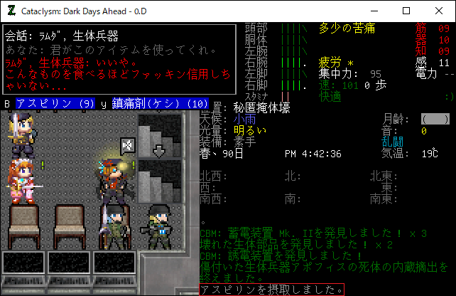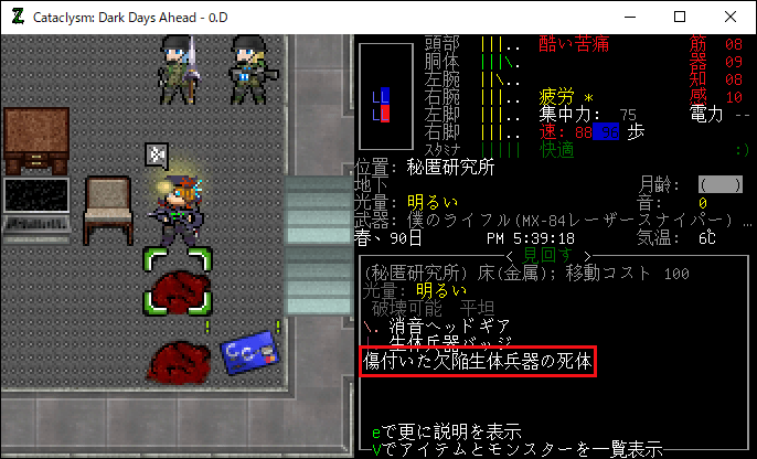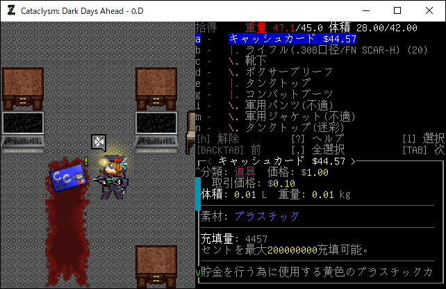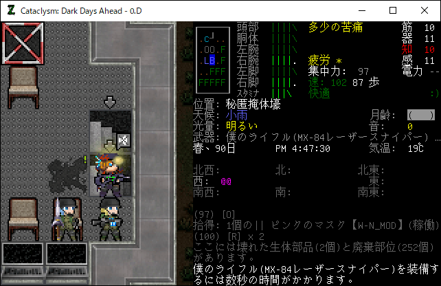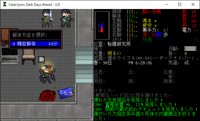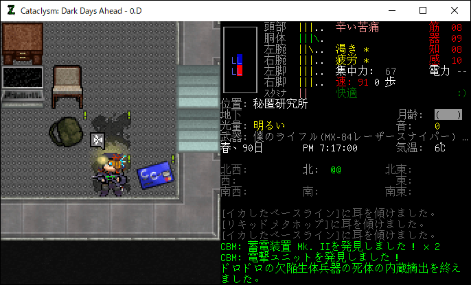 この投稿は「Cataclysm Dark Days Ahead」のプレイ日記です。毎日更新をします。目次はこちら。